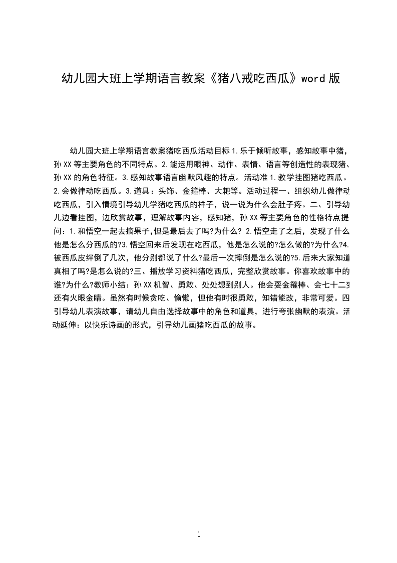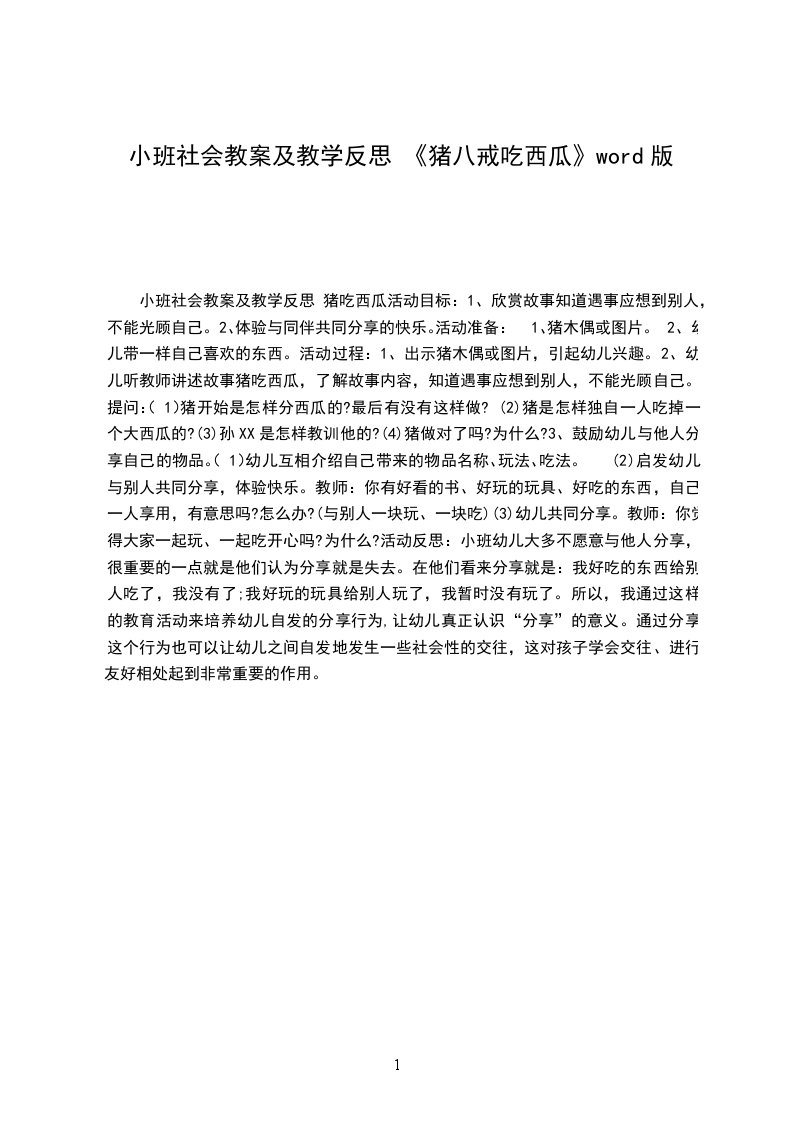 2、幼儿听西席报告故事猪吃西瓜,相识故事内容,知道遇事应想到别人,不克不及惠顾本身。提问: