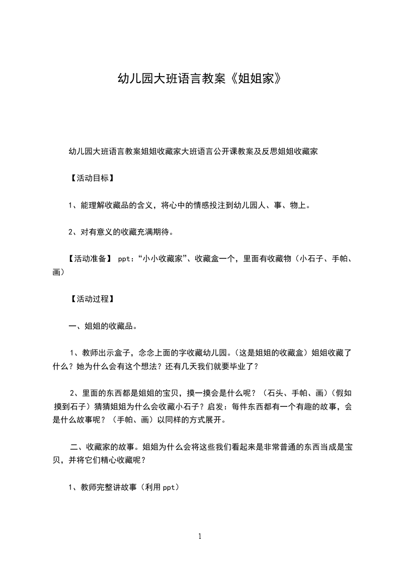 幼儿园大班语言教案姐姐收藏家大班语言公开课教案及反思姐姐收藏家