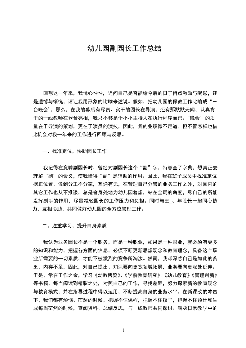 甲方根据需要安排乙方从事副园长工作。乙方应胜任本职工作,并进步副园长技巧,乙方在国家规定的工作时间内要保质保量完成甲方安排的工作任务。