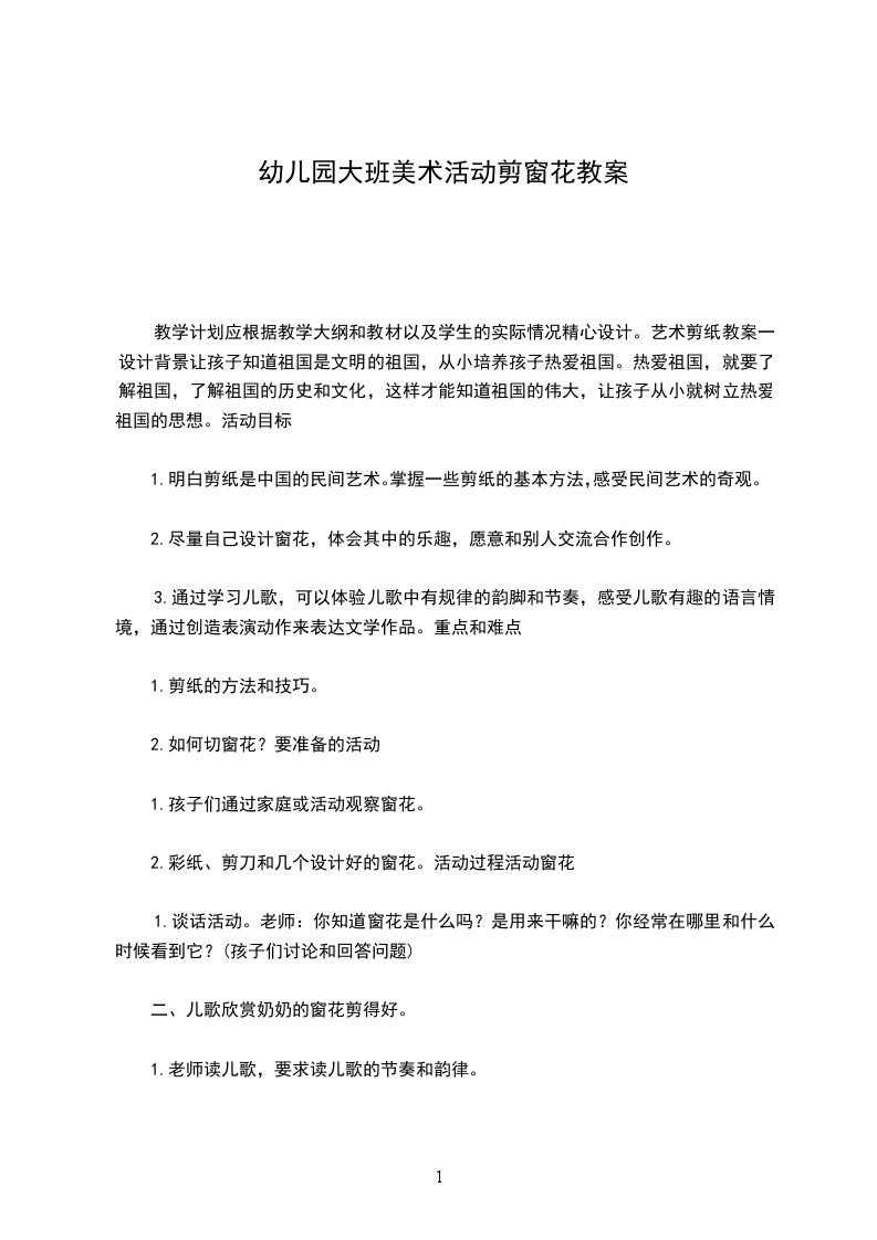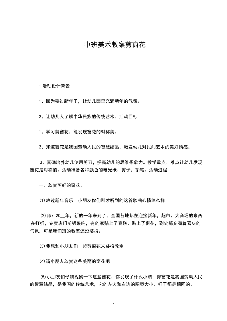 2.彩色纸若干,剪刀、胶水等。让我们一起将这些美丽的窗花布置到我们的教室里,还有作品城堡里,把这份喜庆和大家一起分享吧!3设计背景让幼儿知道祖国是一个文明的祖国,从小培养孩子热爱祖国。热爱祖国就要了解祖国,了解祖国的历史,了解祖国的文化,从而知道祖国的伟大,使幼儿从小就树立热爱祖国的思想。活动目标
