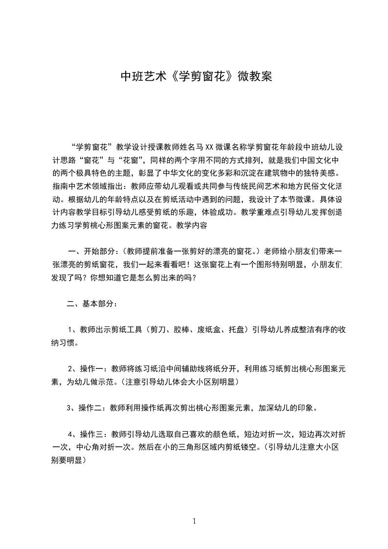1.教师:小朋友都熟悉了剪窗花的基本方法。今天,小朋友们自己来设计一个窗花作品,好吗