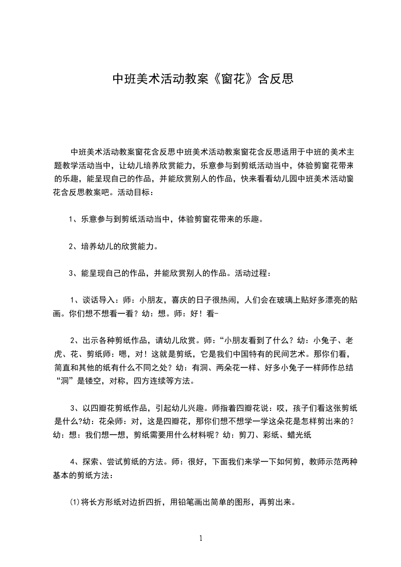 一、谈话活动。教师:你们知道窗花是什么吗它是用来干什么的你们都在什么地方、什么时候经常看到它(幼儿讨论,回答问题)