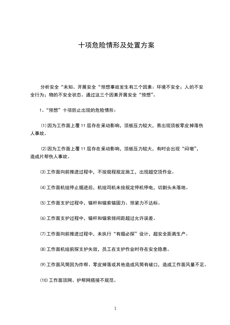 2、“预想”十项防止出现危险情形对策措施: