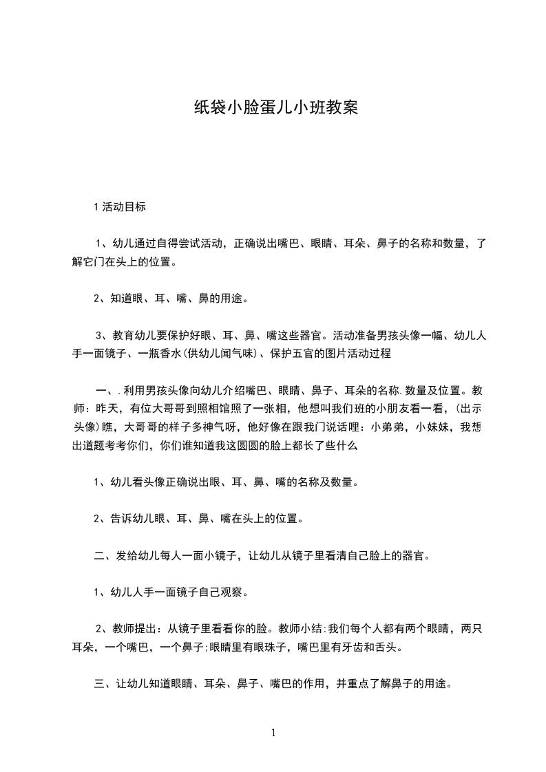 一、.利用男孩头像向幼儿介绍嘴巴、眼睛、鼻子、耳朵的名称.数量及位置。教师:昨天,有位大哥哥到照相馆照了一张相,他想叫我们班的小朋友看一看,(出示头像)瞧,大哥哥的样子多神气呀,他好像在跟我门说话哩:小弟弟,小妹妹,我想出道题考考你们,你们谁知道我这圆圆的脸上都长了些什么