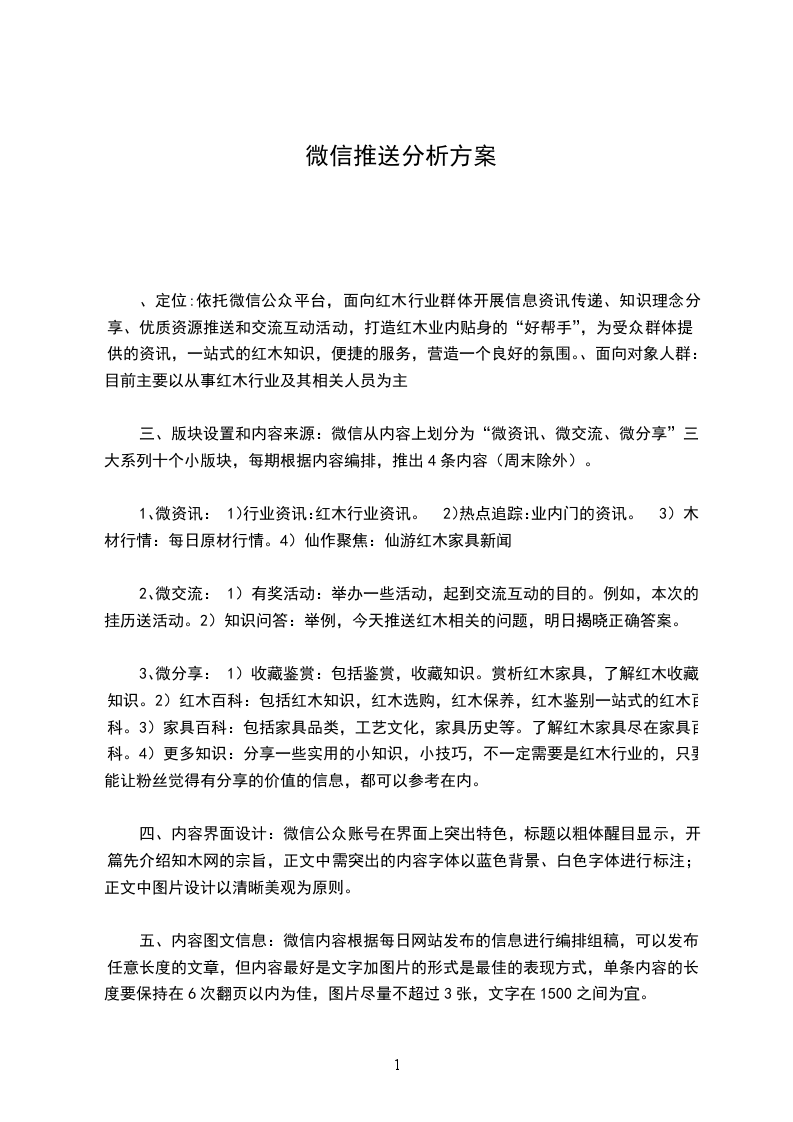 、定位:依托微信公众平台,面向红木行业群体开展信息资讯传递、知识理念分享、优质资源推送和交流互动活动,打造红木业内贴身的“好帮手”,为受众群体提供的资讯,一站式的红木知识,便捷的服务,营造一个良好的氛围。、面向对象人群:目前主要以从事红木行业及其相关人员为主