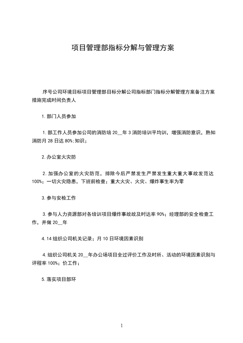 序号公司环境目标项目管理部目标分解公司指标部门指标分解管理方案备注方案措施完成时间负责人