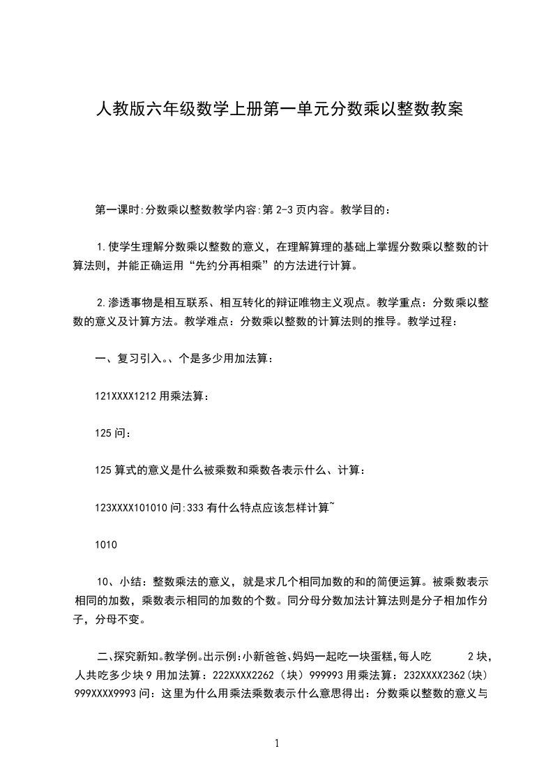 第一课时:分数乘以整数教学内容:第2-3页内容。教学目的: