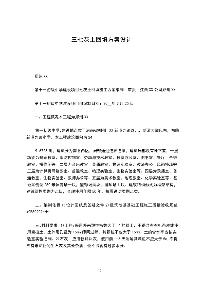 第十一初级中学建设项目七灰土回填施工方案编制:审批:江西XX公司郑州XX