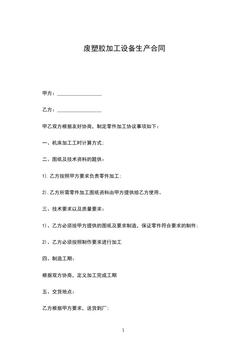 2).乙方所需零件加工图纸资料由甲方提供给乙方使用。
