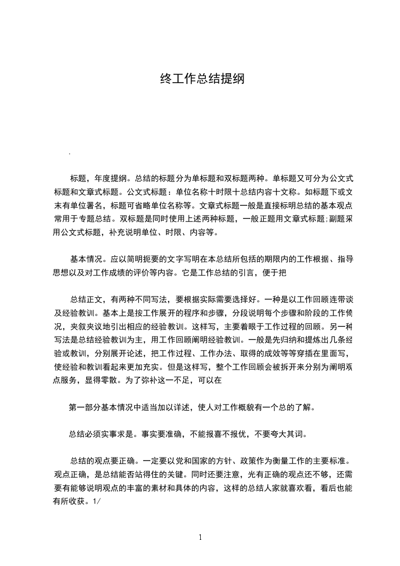 标题,年度提纲。总结的标题分为单标题和双标题两种。单标题又可分为公文式标题和文章式标题。公文式标题:单位名称十时限十总结内容十文称。如标题下或文末有单位署名,标题可省略单位名称等。文章式标题一般是直接标明总结的基本观点,常用于专题总结。双标题是同时使用上述两种标题,一般正题用文章式标题;副题采用公文式标题,补充说明单位、时限、内容等。