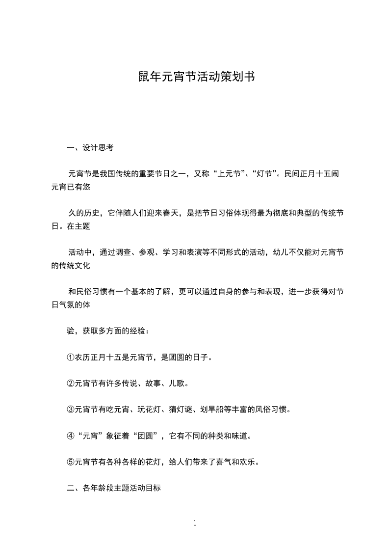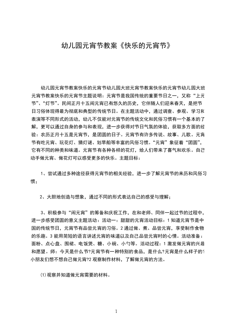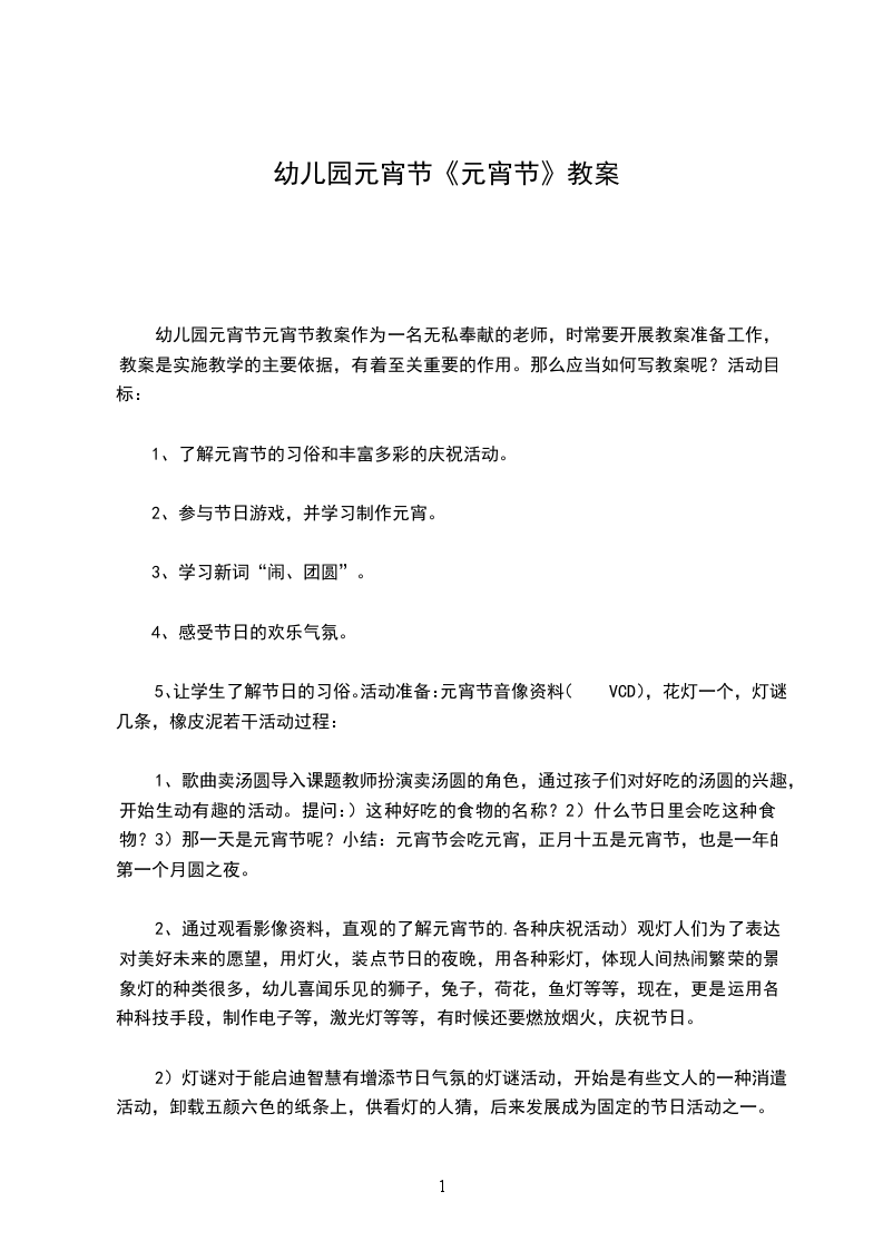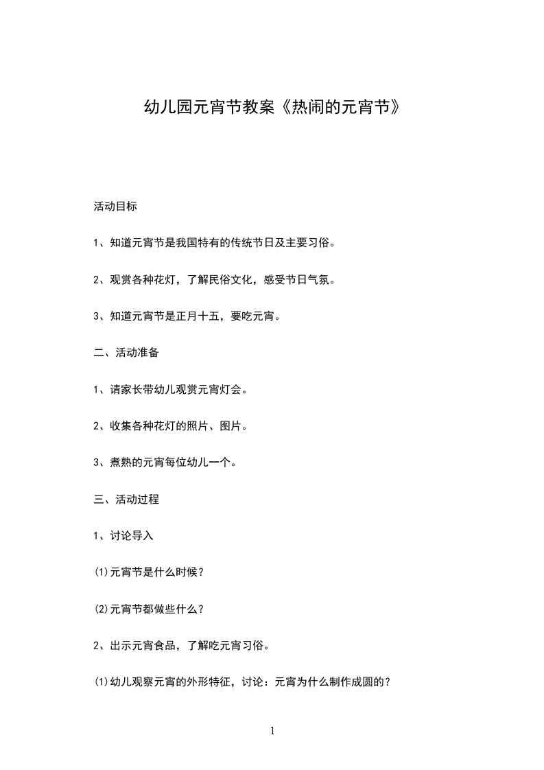 (1)知道元宵节是团圆的节日,初步了解元宵节人们的活动和特别的食品元宵;