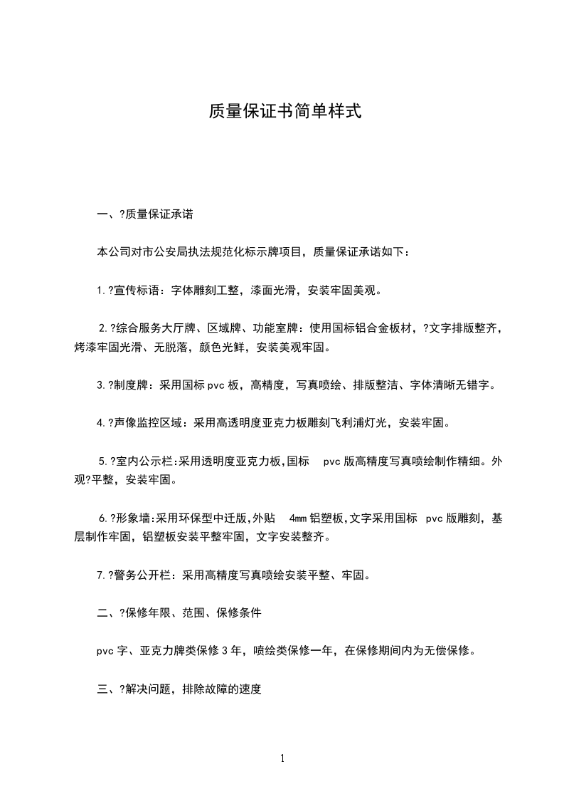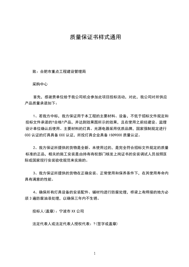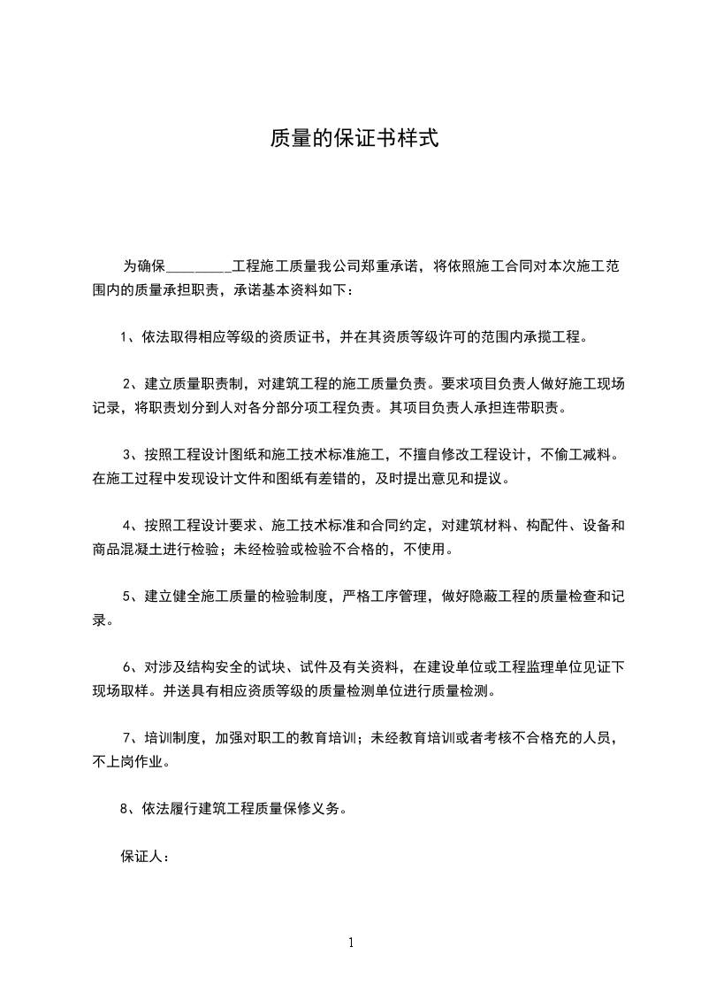 为确保_________工程施工质量我公司郑重承诺,将依照施工合同对本次施工范围内的质量承担职责,承诺基本资料如下: