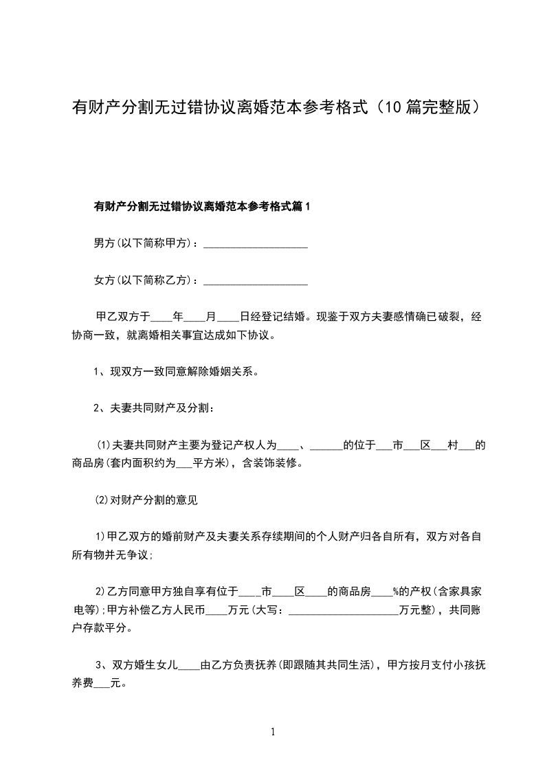 九、本协议一式________份,自婚姻登记处颁发离婚证之日起生效,男、女双方各执________份,婚姻登记机关存档一份。