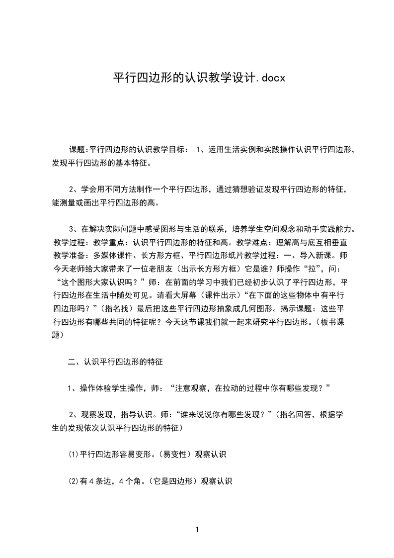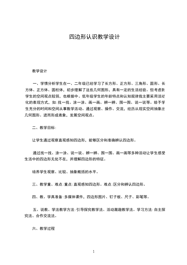三、教学重、难点:重点:直观感知四边形。难点:区分和辨认四边形。
