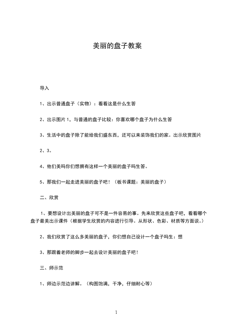 2、出示图片1,与普通的盘子比较:你喜欢哪个盘子为什么生答