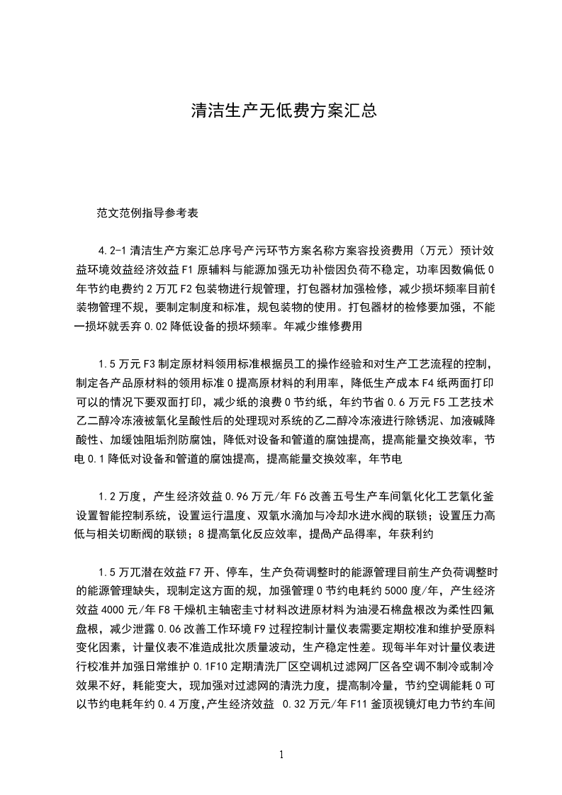 4.2-1清洁生产方案汇总序号产污环节方案名称方案容投资费用(万元)预计效益环境效益经济效益F1原辅料与能源加强无功补偿因负荷不稳定,功率因数偏低0年节约电费约2万兀F2包装物进行规管理,打包器材加强检修,减少损坏频率目前包装物管理不规,要制定制度和标准,规包装物的使用。打包器材的检修要加强,不能一损坏就丢弃0.02降低设备的损坏频率。年减少维修费用