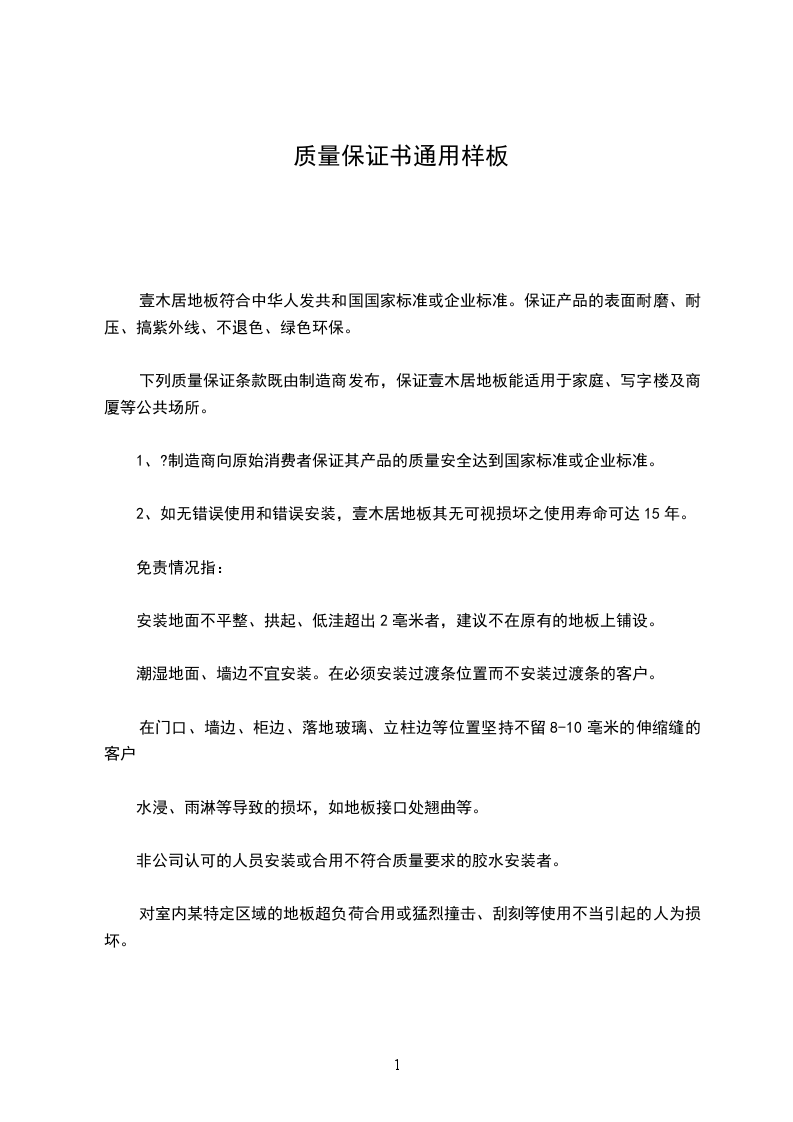下列质量保证条款既由制造商发布,保证壹木居地板能适用于家庭、写字楼及商厦等公共场所。