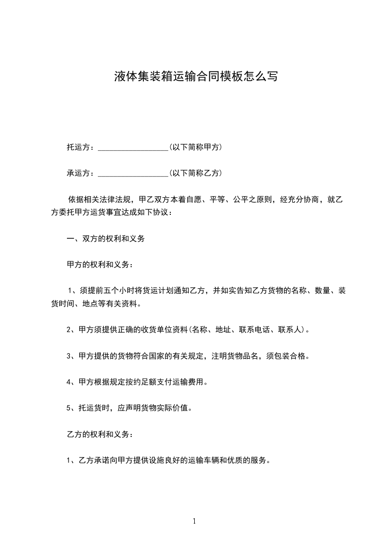 液体集装箱运输合同