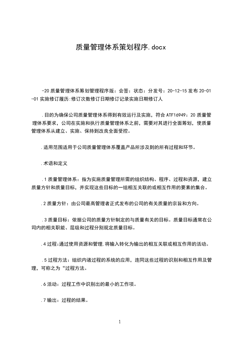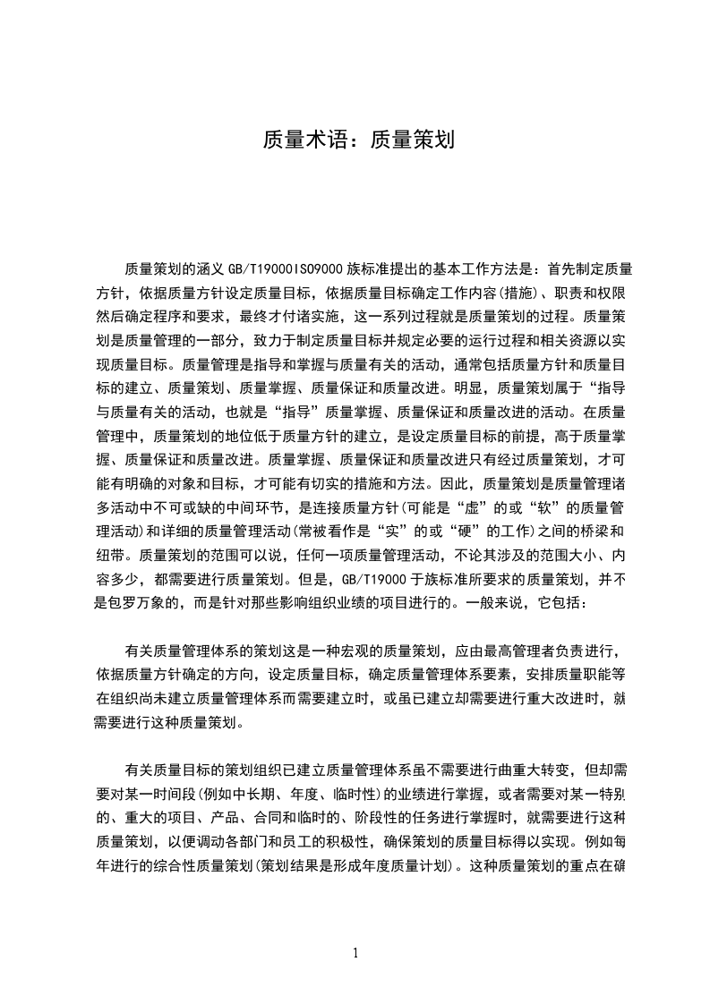 (7)对源组织之外的影响产品质量的过程进行识别,并确保对其实施控制。策划的输出形成质量手册和程序文件。策划应确保体系的变更在受控状态下进行,并保持变更期间质量体系的完整性。产品实现的策划策划前的准备