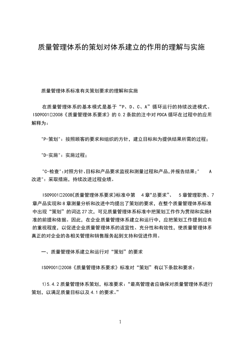 5.2质量体系策划根据质量目标对质量体系进行策划,体系策划应包括: