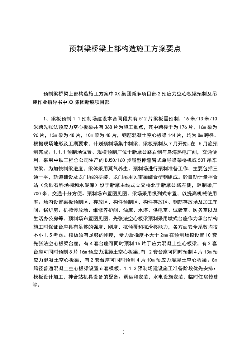预制梁桥梁上部构造施工方案中XX集团新麻项目部2预应力空心板梁预制及吊装作业指导书中XX集团新麻项目部