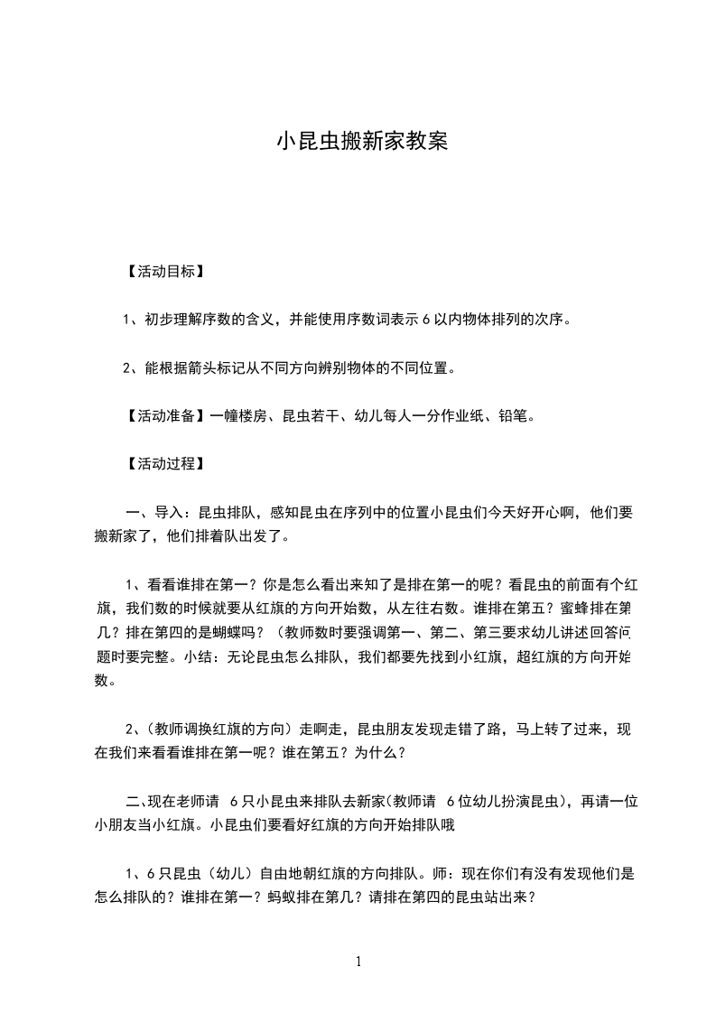 百度文库让每个人平等地提升自我中班数学教案-小昆虫搬新家