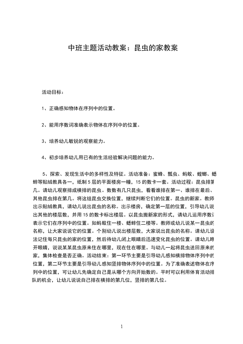 【活动准备】一幢楼房、昆虫若干、幼儿每人一分作业纸、铅笔。