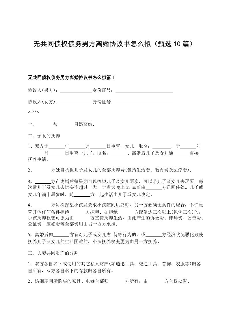 无共同债权债务男方离婚协议书怎么拟篇10