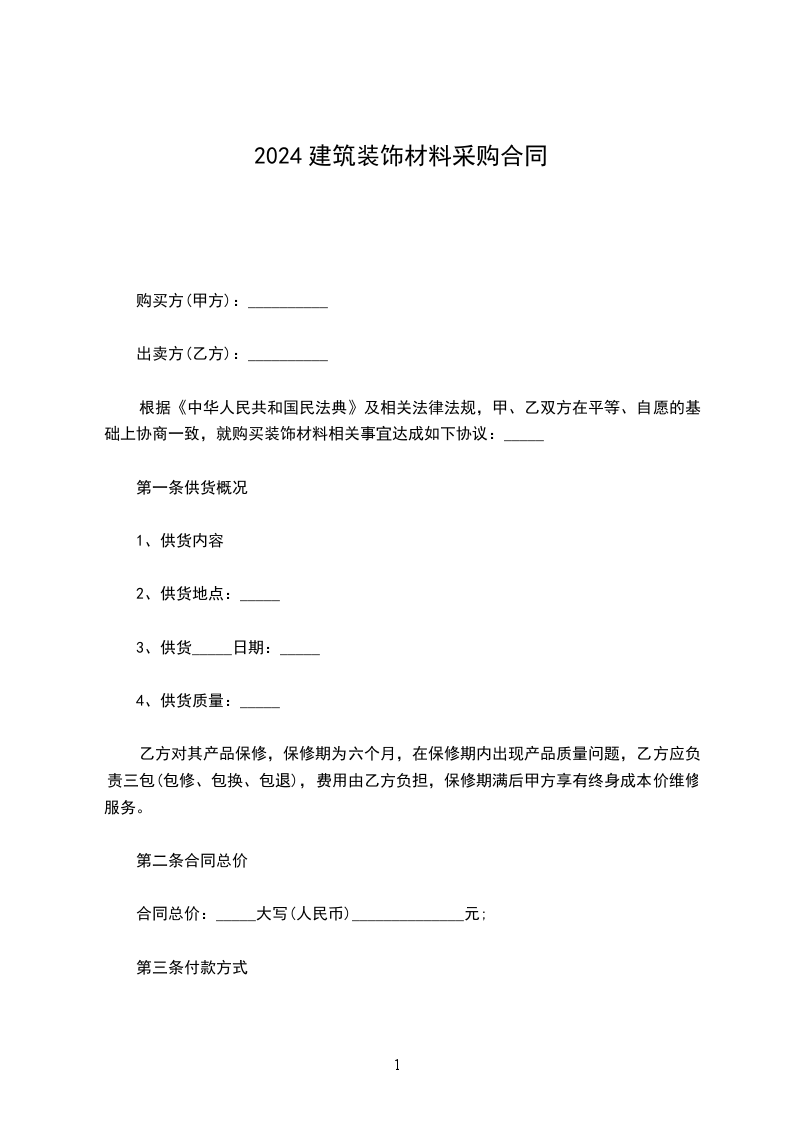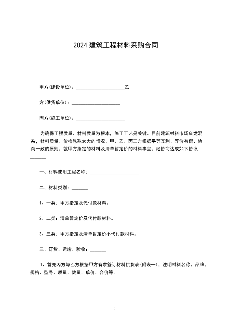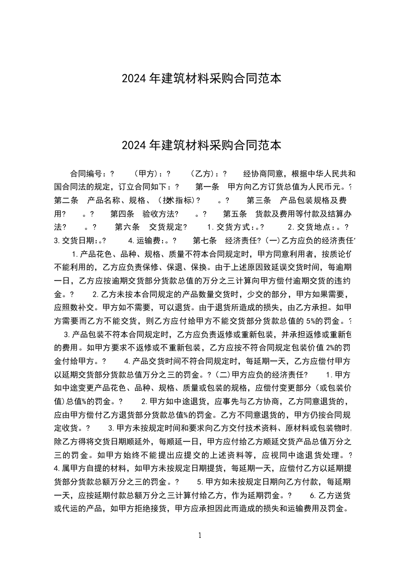 2024年建筑材料采购合同范本