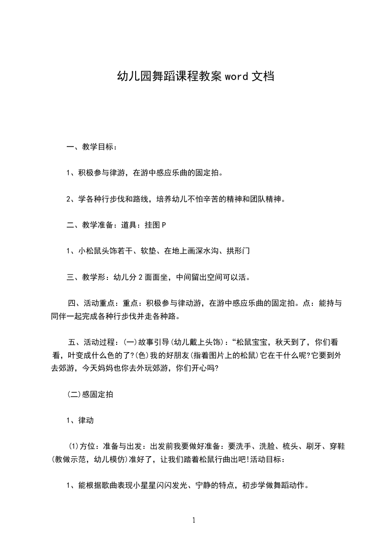 幼儿园大班舞蹈课教案1活动目标