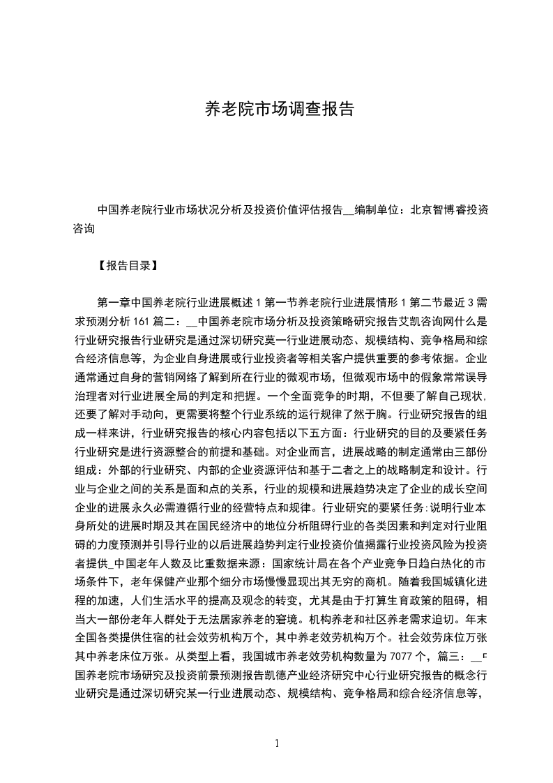 中国养老院行业市场状况分析及投资价值评估报告__编制单位:北京智博睿投资咨询