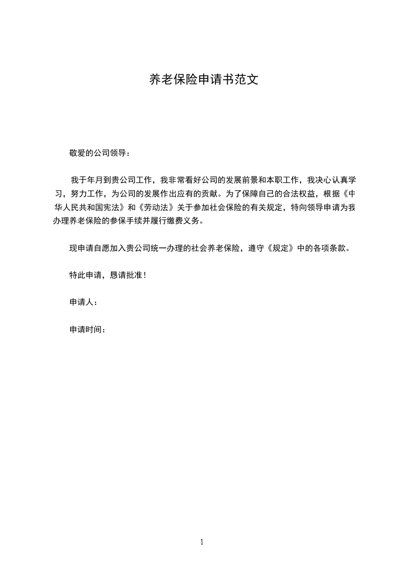 我于年月到贵公司工作,我非常看好公司的发展前景和本职工作,我决心认真学习,努力工作,为公司的发展作出应有的贡献。为了保障自己的合法权益,根据《中华人民共和国宪法》和《劳动法》关于参加社会保险的有关规定,特向领导申请为我办理养老保险的参保手续并履行缴费义务。