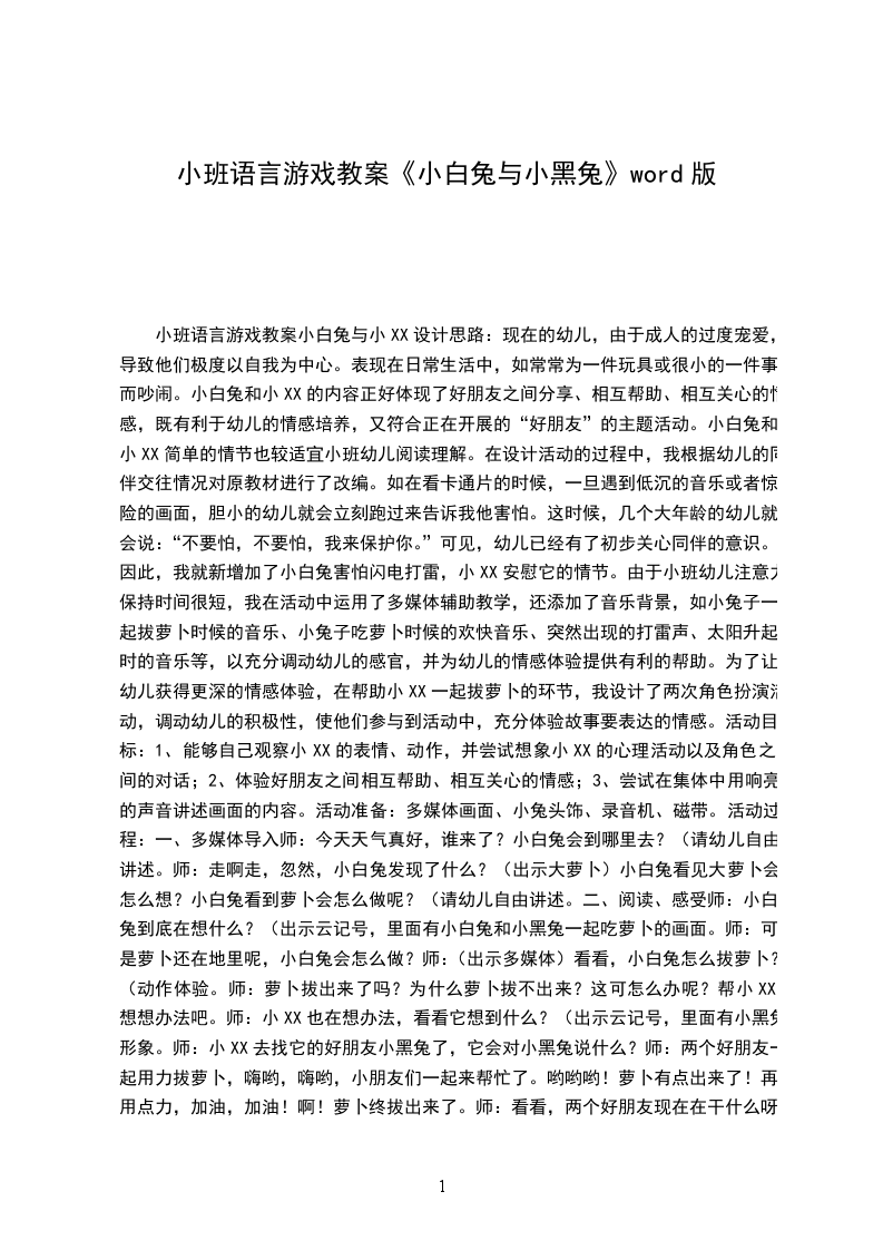 2、在美术区放置白猫和黑猫图让幼儿涂色。情景表演(幼儿戴着猫面具出场,自我介绍与表演)白猫:我叫白猫。黑猫:我叫黑猫。白、黑猫:我两颜色相反,你们千万别搞错哟!白猫:我是白猫黑鼻子。黑猫:我是黑猫白鼻子,有趣吗 白猫:今天天气真好,我们出去玩耍,好吗 黑猫:好,到草地上玩吧。(白猫走到有粉笔灰的绿色地毯,并在地上滚来滚去,乘幼儿不注意时,往面具的鼻子上擦。)白猫:哎呀,你的鼻子脏了,我来给你擦鼻子(用沾有泥巴的手去抹黑猫的鼻子)。黑猫:你的鼻子也脏了,我来给你擦鼻子。(动作同上)(白猫黑猫相互对视,手指点对方的鼻子,捧腹大笑。)活动反思绕口令对于孩子们来说,接触的非常少,但它特有的快节奏的朗诵,使幼儿非常的感兴趣。在活动中,我发现小朋友都表现的很认真,整个活动下来基本上能够把绕口令朗诵下来。
