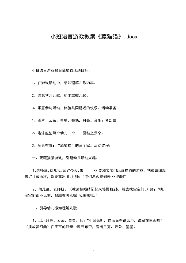 猜一猜(教师):今天老师给你们带来了一对好朋友,请你们猜猜是谁 教师念谜语:“胡子翘,妙妙叫,夜晚捉老鼠,白天睡大觉。”猜猜是谁 (幼儿回答)