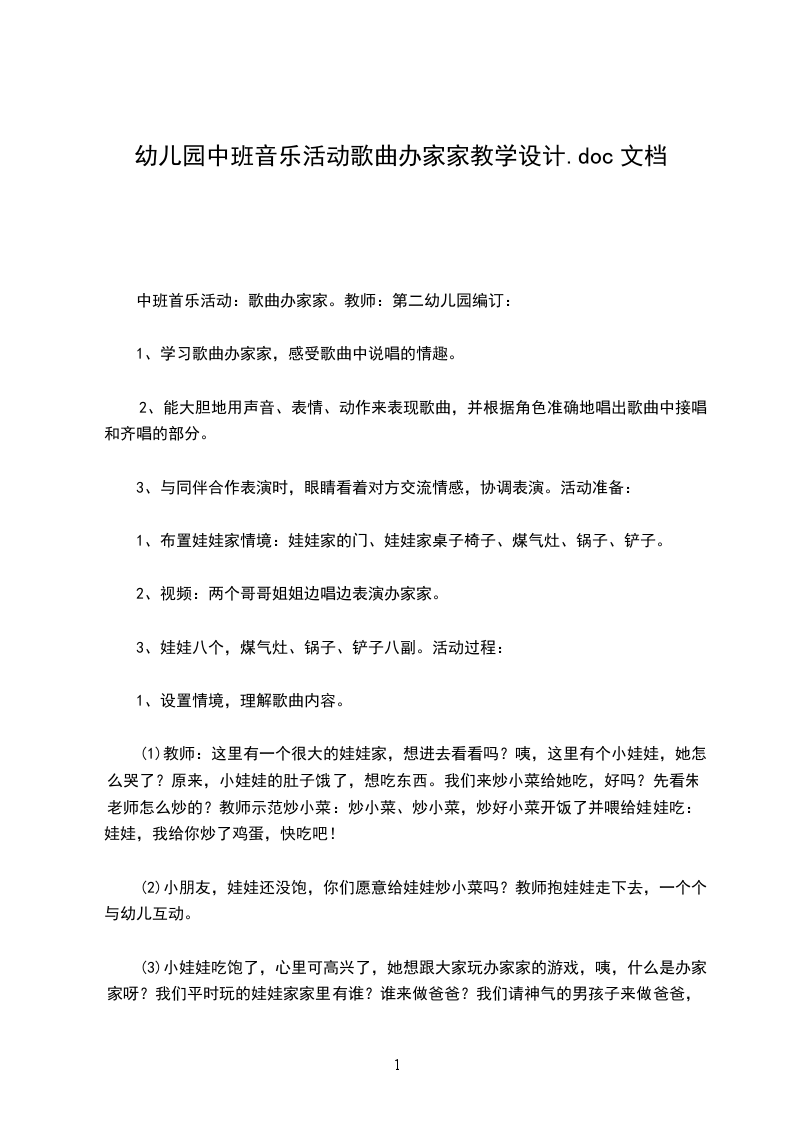 幼儿园中班音乐教案办家家幼儿园中班音乐教案办家家
