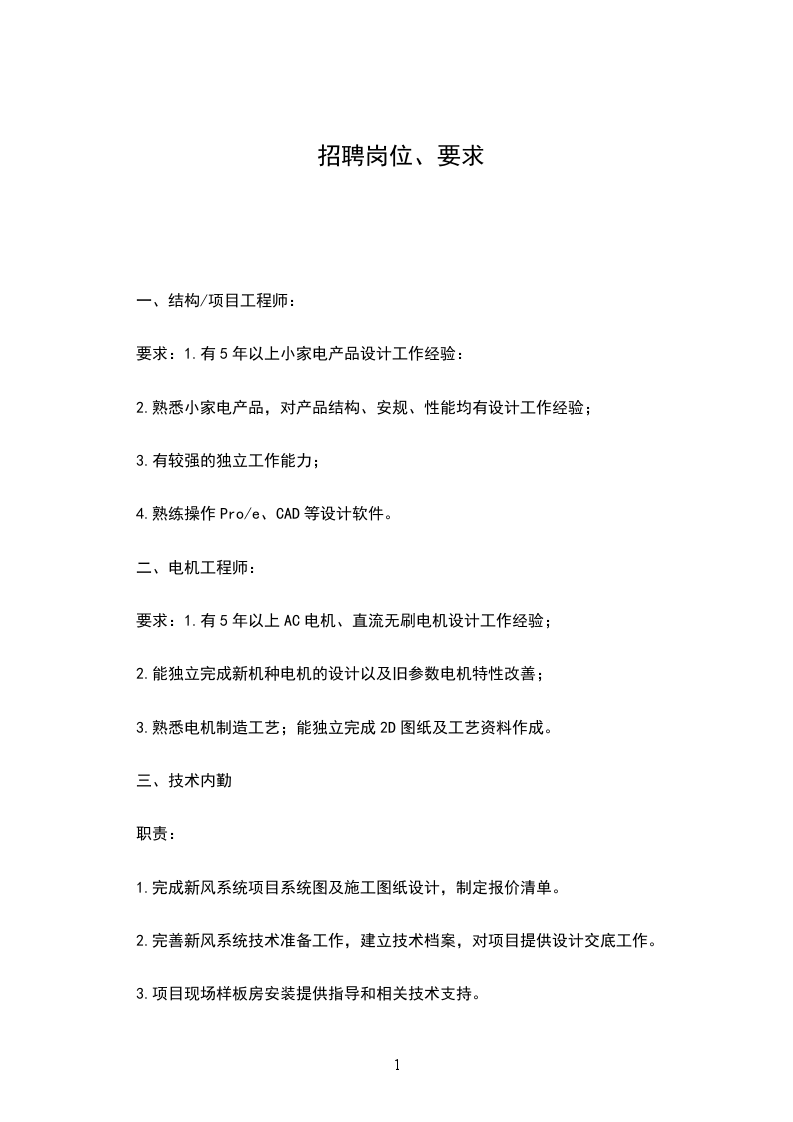 要求:1.有5年以上AC电机、直流无刷电机设计工作经验;