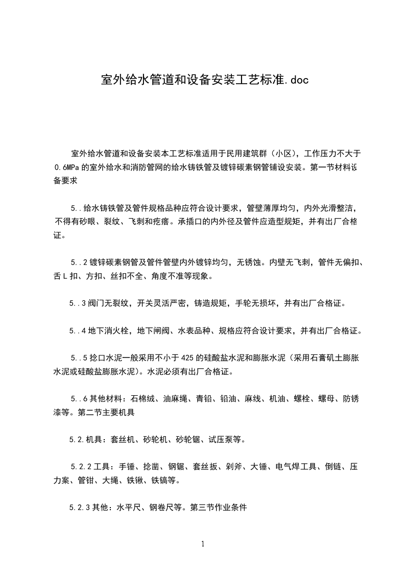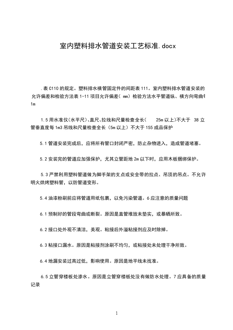 5成品保护管道预制加工、防腐、安装、试压等工序应紧密衔接,如施工有间断,应及时将敞开的管口封闭,以免进入杂物堵塞管子。吊装重物不得采用已安装好的管道做为吊点,也不得在管道上施放脚手板踩蹬。安装用的管洞修补工作,必须在面层粉饰之前全部完成。粉饰工作结束后,墙、地面建筑成品不得碰坏。粉饰工程期间,必要时应设专人监护已安装完的管道、阀部件、仪表等。防止其它施工工序插入时碰坏成品。