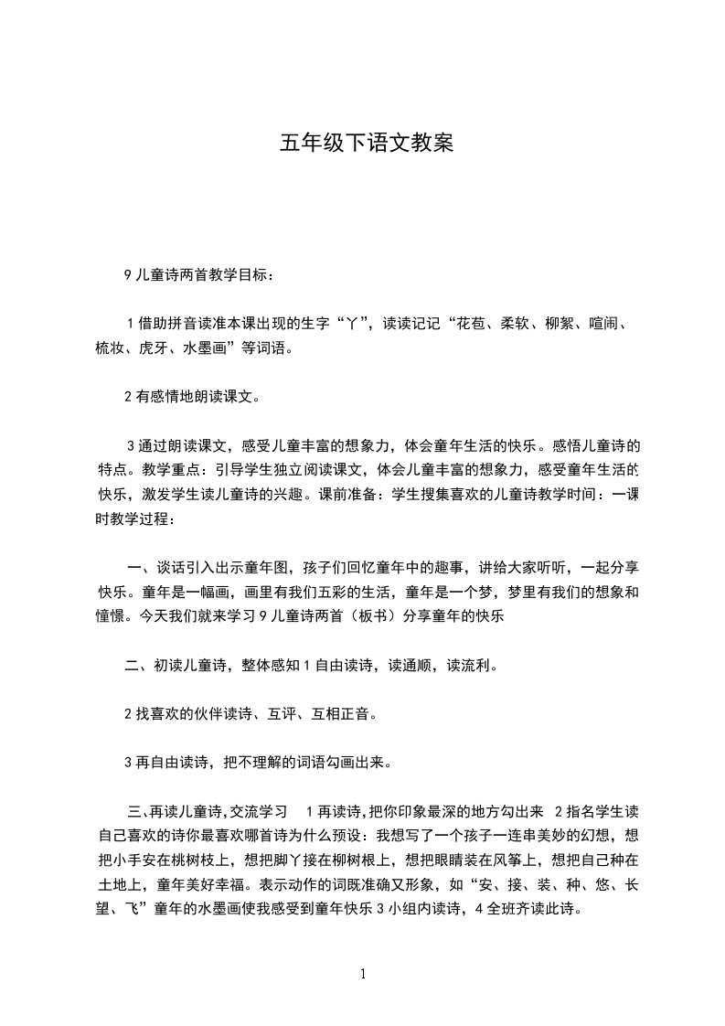 9儿童诗两首教学目标: