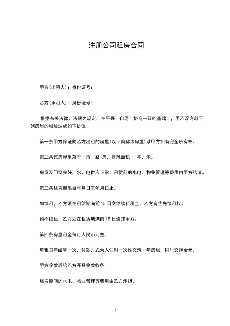 一、房屋租赁的位置用及用途位于甲方公司内办公楼一间现租给乙方作为___公司注册及办公使用________________.