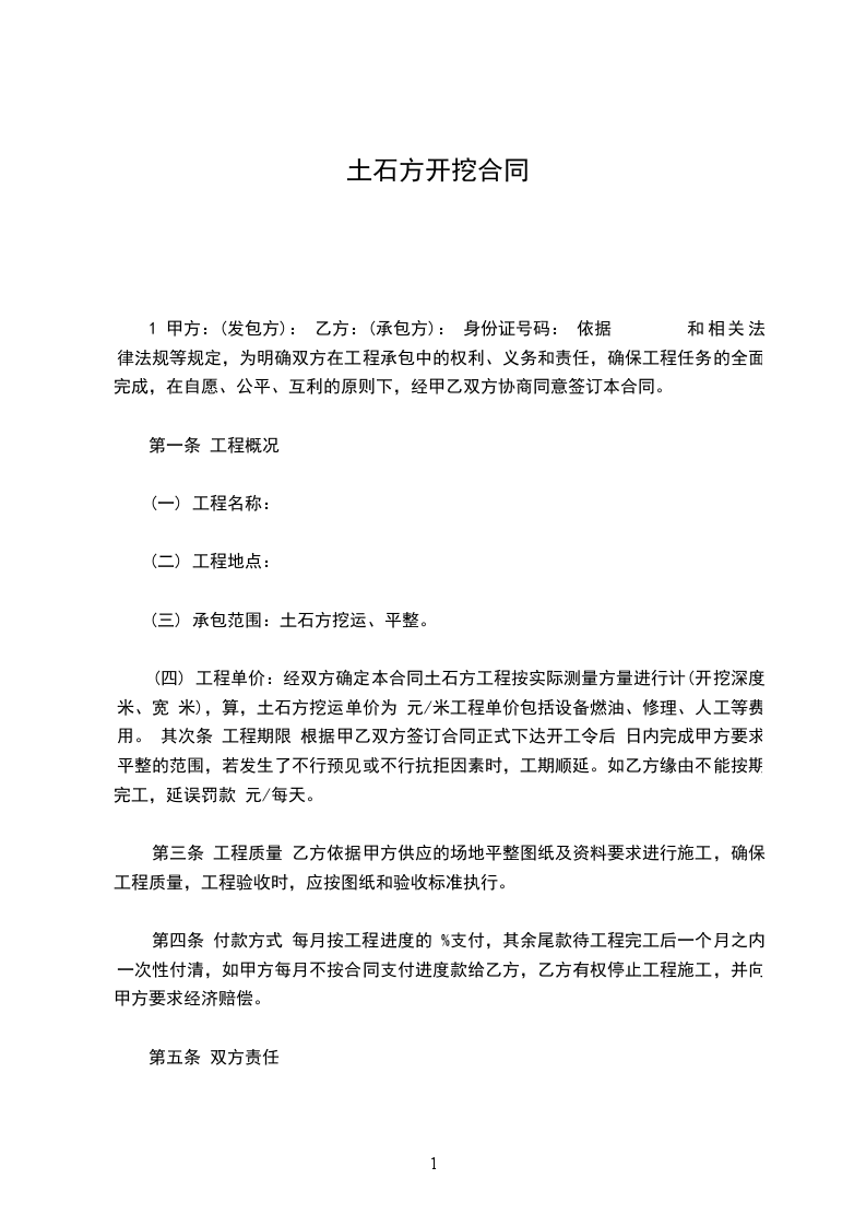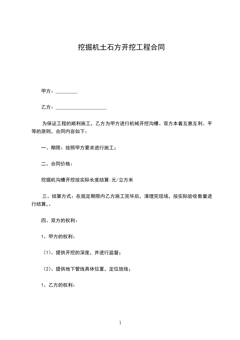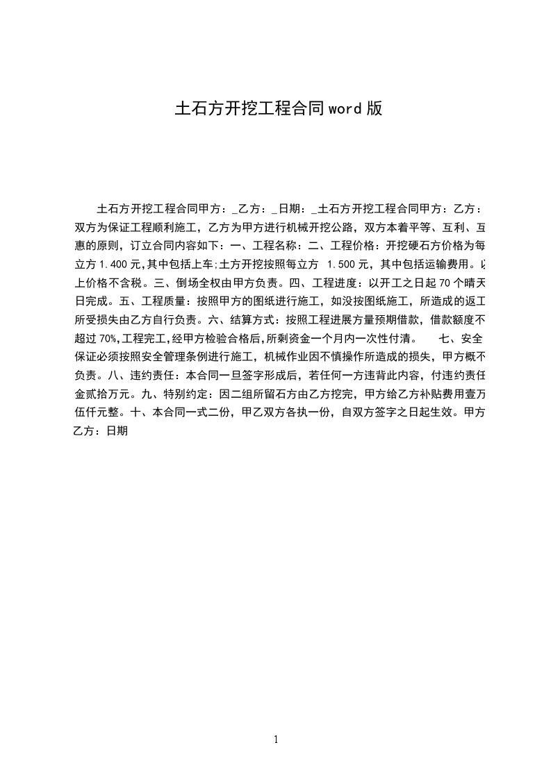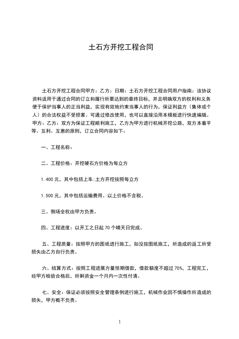 土石方开挖工程合同甲方:乙方:日期:土石方开挖工程合同用户指南:该协议资料适用于通过合同的订立和履行所要达到的最终目标,并且明确双方的权利和义务,便于保护当事人的正当利益,实现有效地约束当事人的行为,保证利益方(集体或个人)的合法权益不受损害。可通过修改使用,也可以直接沿用本模板进行快速编辑。甲方:乙方:双方为保证工程顺利施工,乙方为甲方进行机械开挖公路,双方本着平等、互利、互惠的原则,订立合同内容如下: