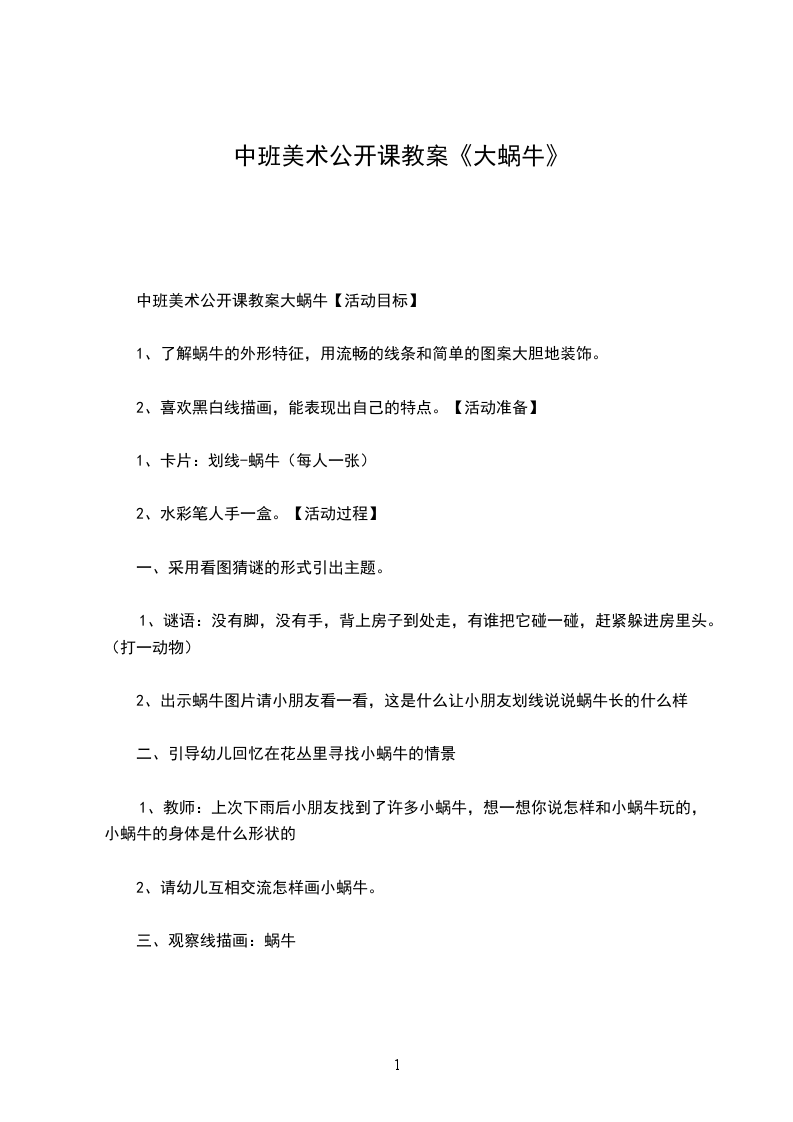 中班美术公开课教案大蜗牛【活动目标】