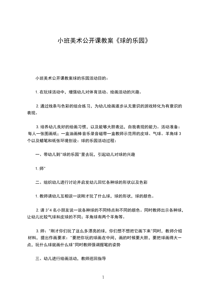 1.在玩球活动中,增强幼儿对体育活动、绘画活动的兴趣。