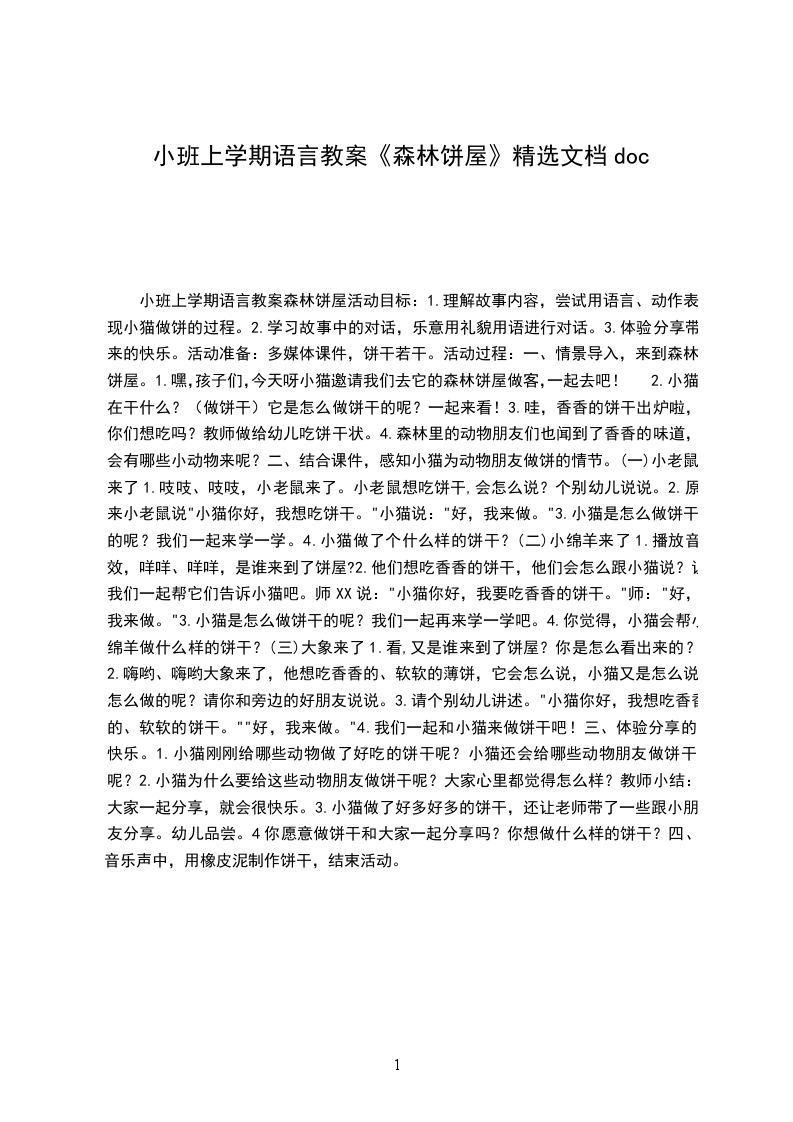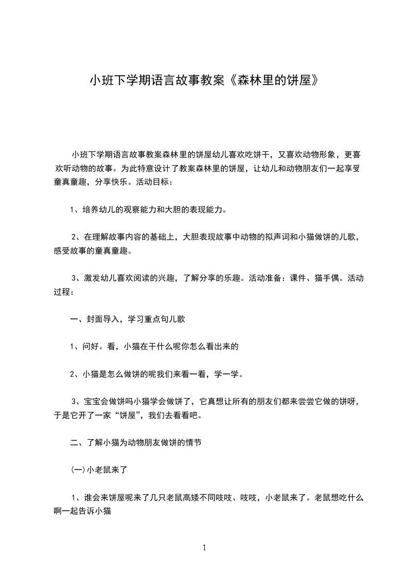 小班下学期语言故事教案森林里的饼屋幼儿喜欢吃饼干,又喜欢动物形象,更喜欢听动物的故事。为此特意设计了教案森林里的饼屋,让幼儿和动物朋友们一起享受童真童趣,分享快乐。活动目标: