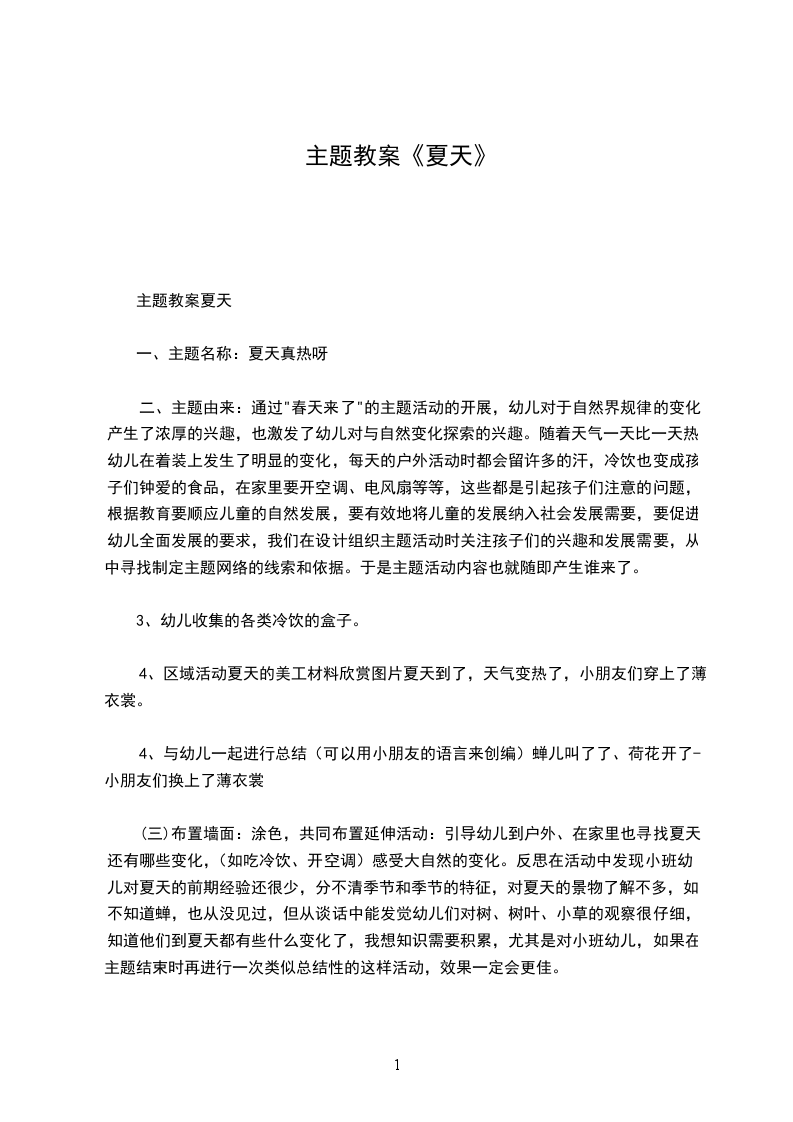 (三)布置墙面:涂色,共同布置延伸活动:引导幼儿到户外、在家里也寻找夏天还有哪些变化,(如吃冷饮、开空调)感受大自然的变化。反思在活动中发现小班幼儿对夏天的前期经验还很少,分不清季节和季节的特征,对夏天的景物了解不多,如:不知道蝉,也从没见过,但从谈话中能发觉幼儿们对树、树叶、小草的观察很仔细,知道他们到夏天都有些什么变化了,我想知识需要积累,尤其是对小班幼儿,如果在主题结束时再进行一次类似总结性的这样活动,效果一定会更佳。