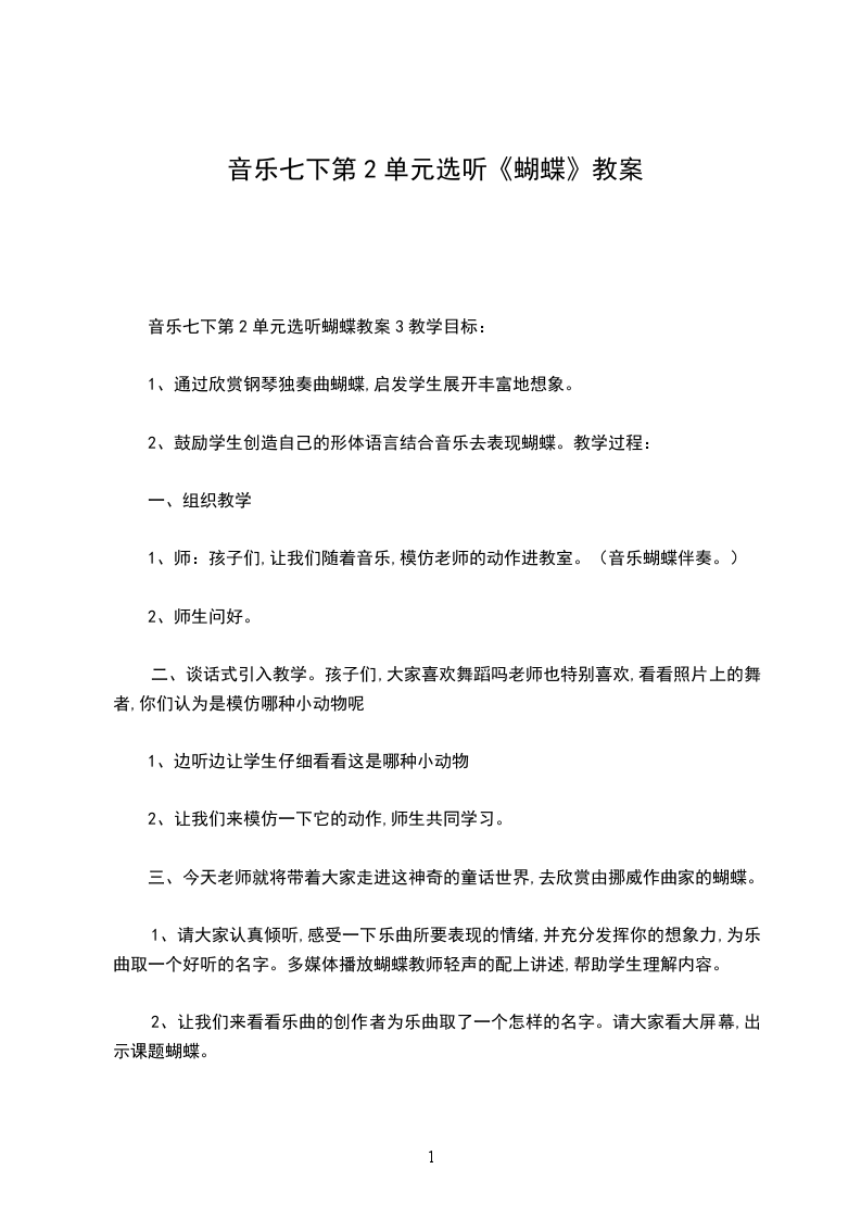 音乐七下第2单元选听蝴蝶教案3教学目标:
