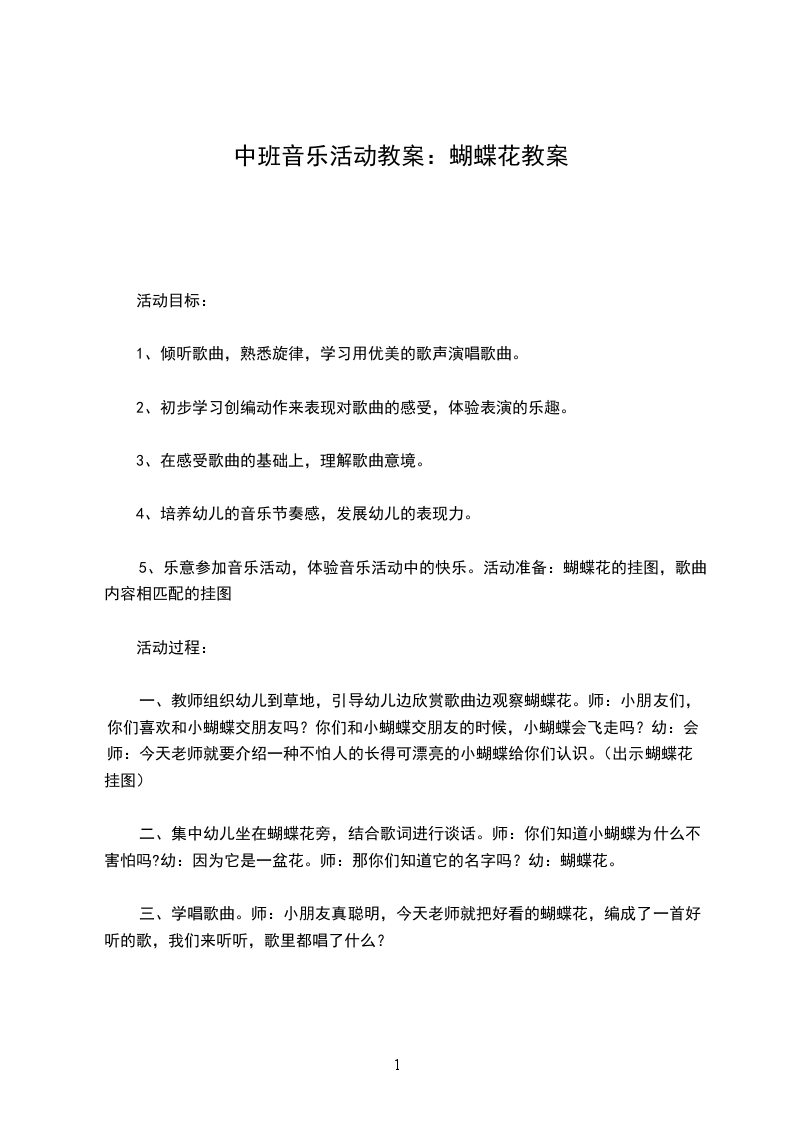 2、鼓励学生创造自己的形体语言结合音乐去表现蝴蝶。教学过程: