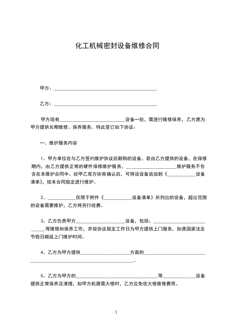 甲、乙双方就______________设备维修事宜经平等协商达成如下协议: