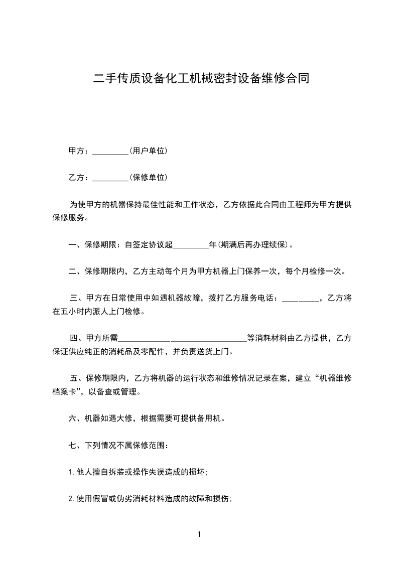 1、甲方将_____________________交给乙方维修。故障为____________________________。
