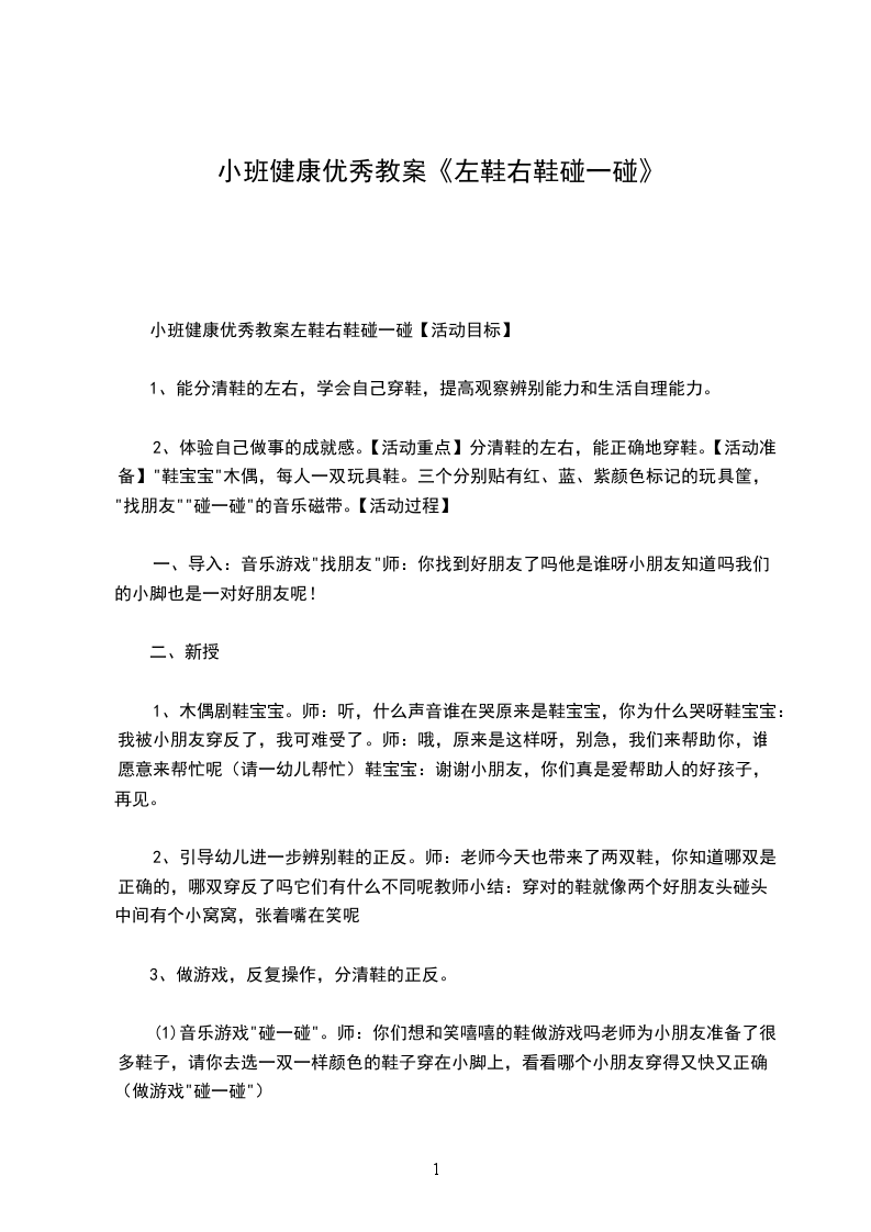 小班健康优秀教案左鞋右鞋碰一碰【活动目标】