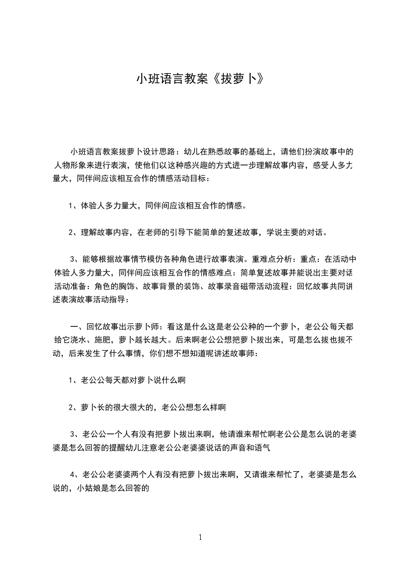 1.师:“孩子们,今天天气真好,妈妈要带你们去很远很远的地方拔萝卜,你们高兴吗”